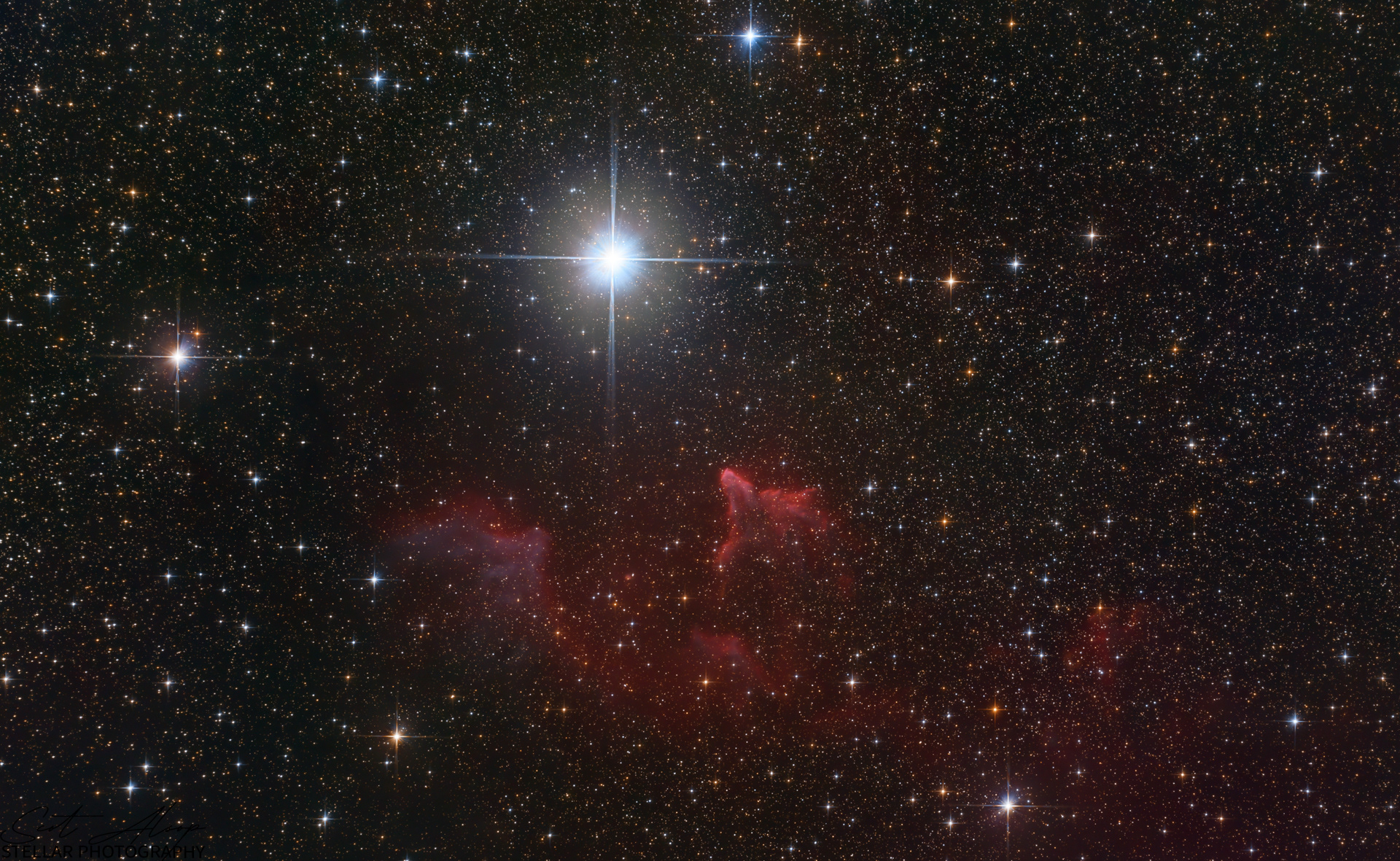 This nebula in the constellation of Cassiopeia has flowing veils of gas and dust that have earned it the nickname "Ghost Nebula." The nebula is being blasted by a torrent of radiation from a nearby, blue-giant star called Gamma Cassiopeia, which can be easily seen with the unaided eye at the center of the distinctive "W" asterism that forms the constellation. IC 63 is located 550 light-years away. I captured this image Sep 9, 2023 and was able to gather just under 6 hours worth of data using a 6 inch Newtonian telescope.